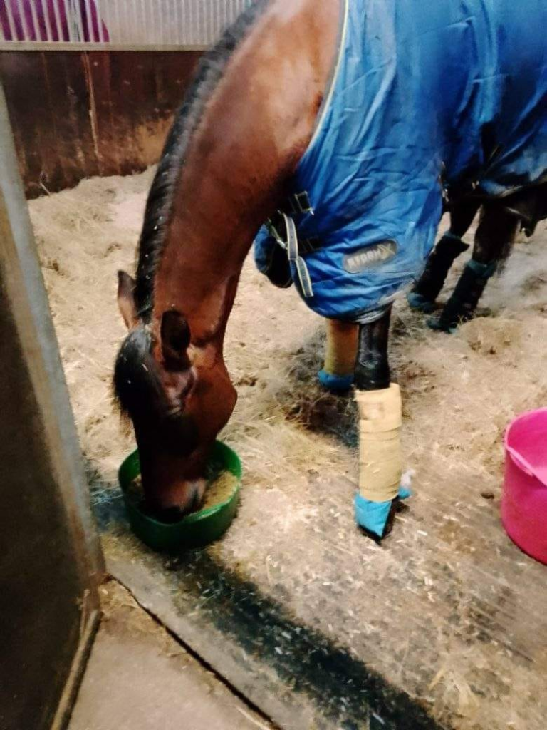 He has lost vasts amounts of weight through pain and stress. He doesn’t look anything like the horse we bought so he is now on a special diet to help him put weight back on.