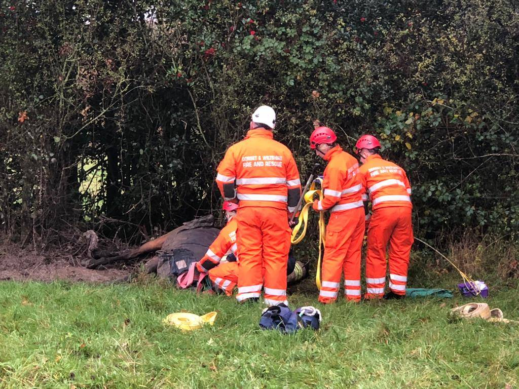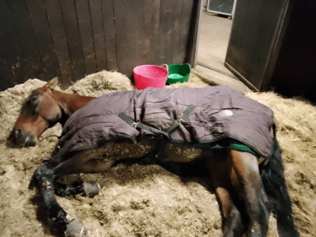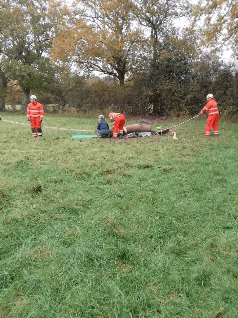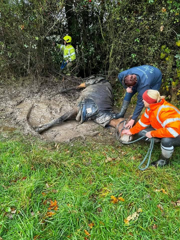 He was so exhausted he couldn’t get up. With the help of everyone they eventually got him to his feet and got him out. He is, however, extremely lame, swollen and covered in wounds. He may not ever recover from his injuries.