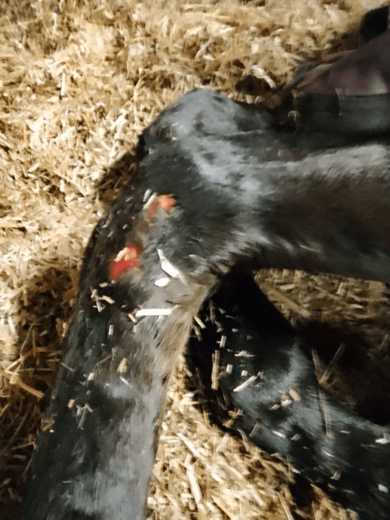 The X rays seem ok thank goodness, however the skin is now falling off his legs. He will improve in time but it’s a long road ahead. He is now allowed to go back out to the field for a few hours so that will hopefully help him to put the weight back on that he has lost.